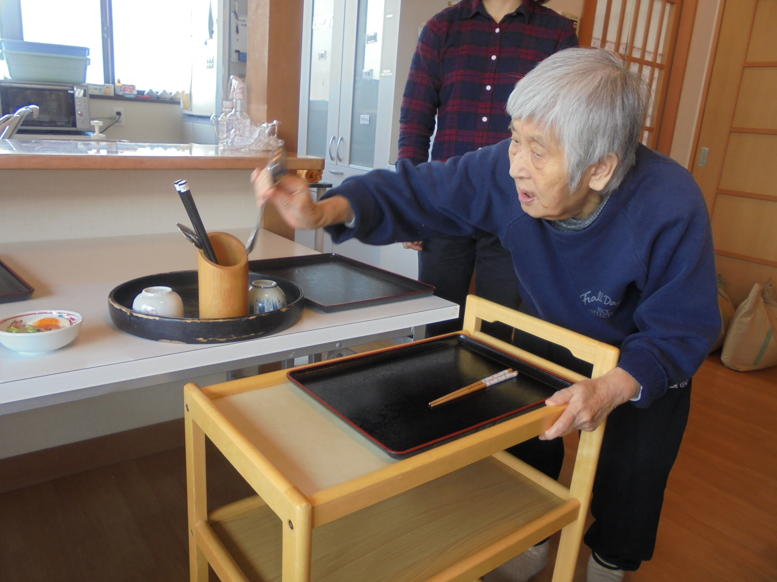 今日から食事のセットはセルフになりました。皆さん順序よく揃えてくださいました。