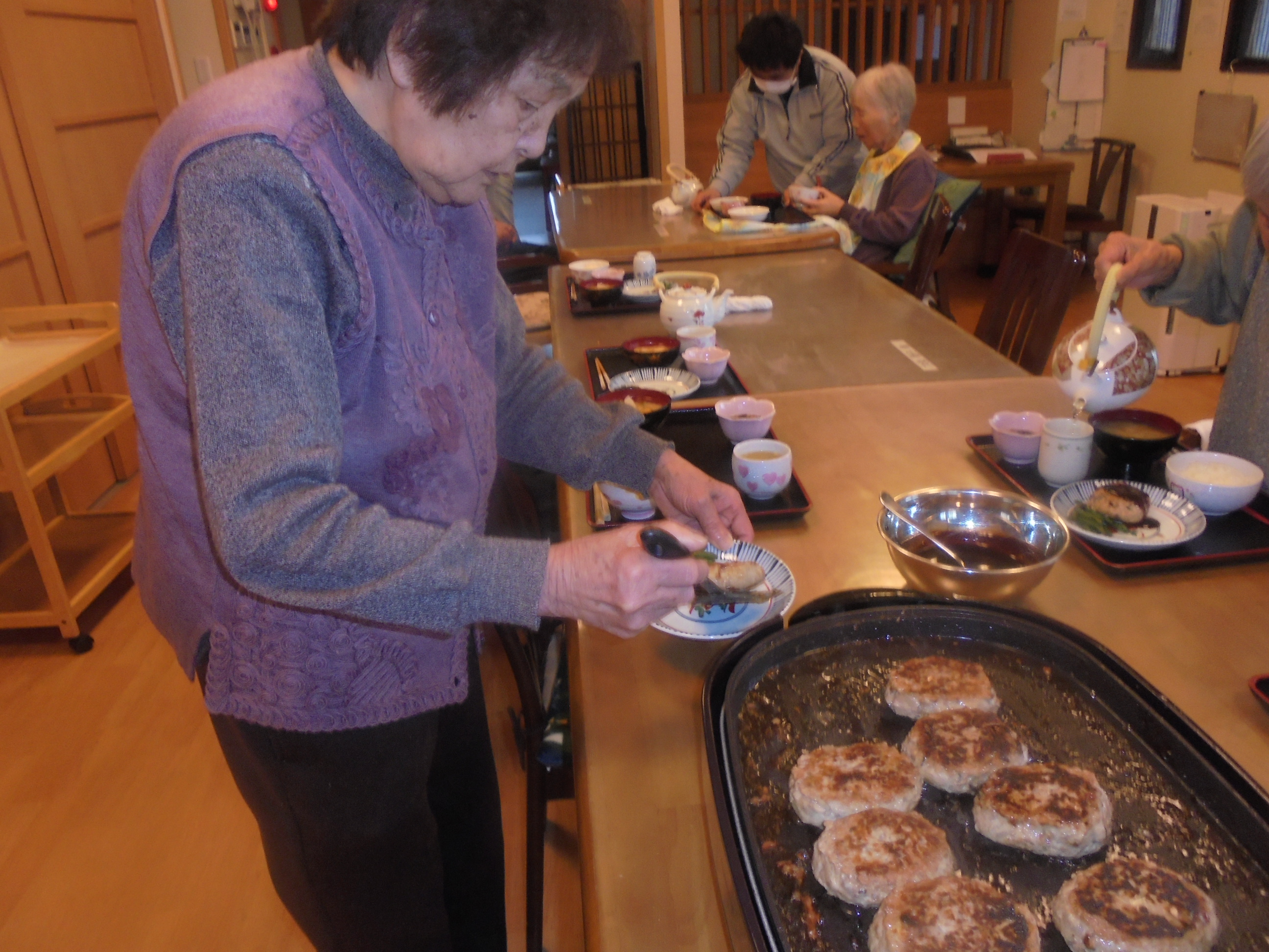 今日のお昼は、焼きたてほかほかのハンバーグを頂きました。