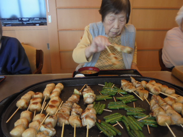 今日のお昼は、焼き鳥。出来立てアツアツを頂きました。