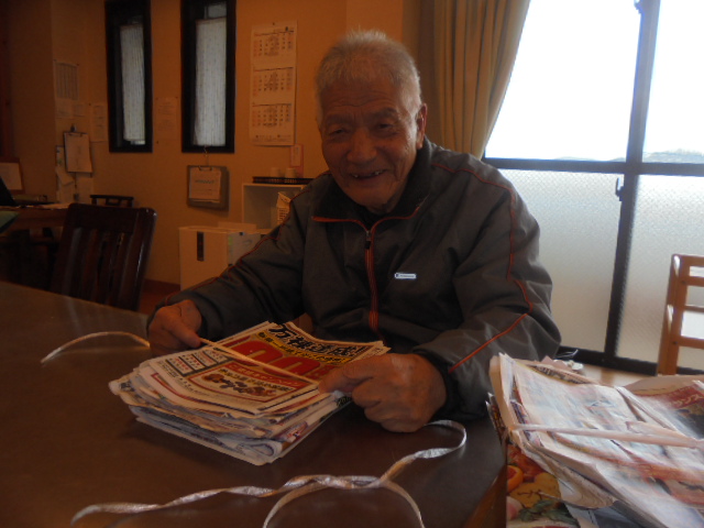 チラシを綺麗に紐でくくり、ゴミ箱へと。