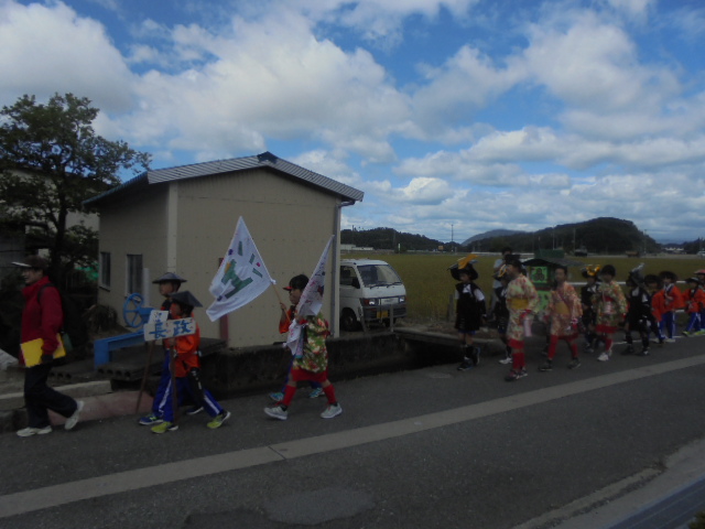 近くの小学生たちが仮装して、お城まで歩かれました。