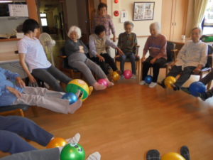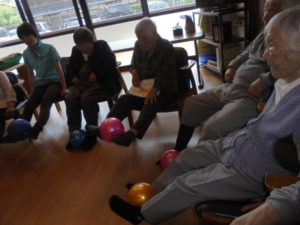今日は一階まごころの方と一緒にボール体操