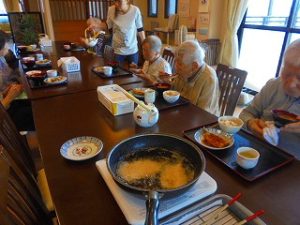 今日のお昼はあじフライでした。目の前で揚げたてを頂きました。