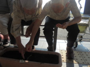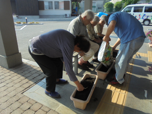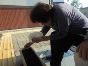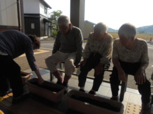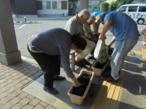 今日は、玄関前でプランターに土を入れ、花の種を蒔きました。