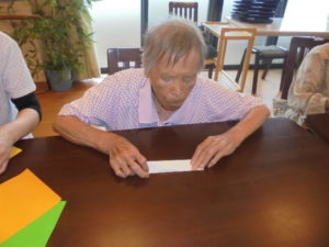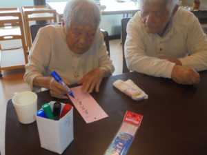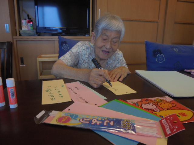 今日は、七夕の飾り作りと、短冊に願い事を書きました。
