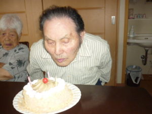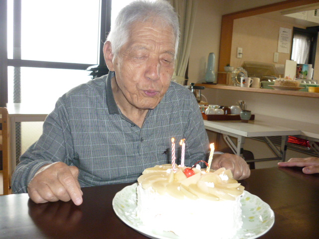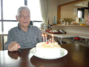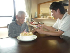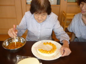今日、お誕生日の方へ、ケーキの飾りつけを