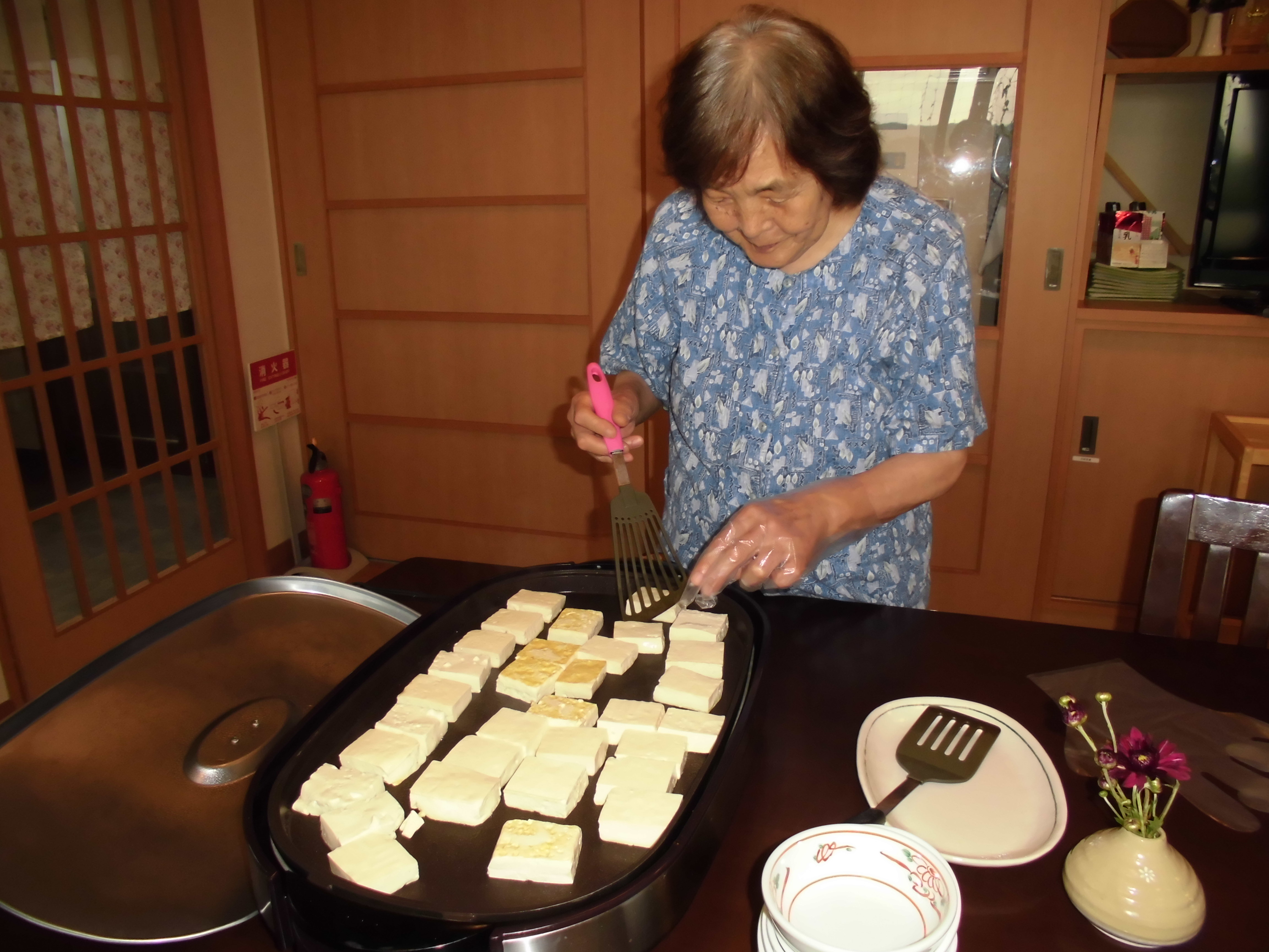 今日のお昼のおかずの1品に、お豆腐を焼いて田楽に