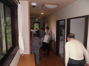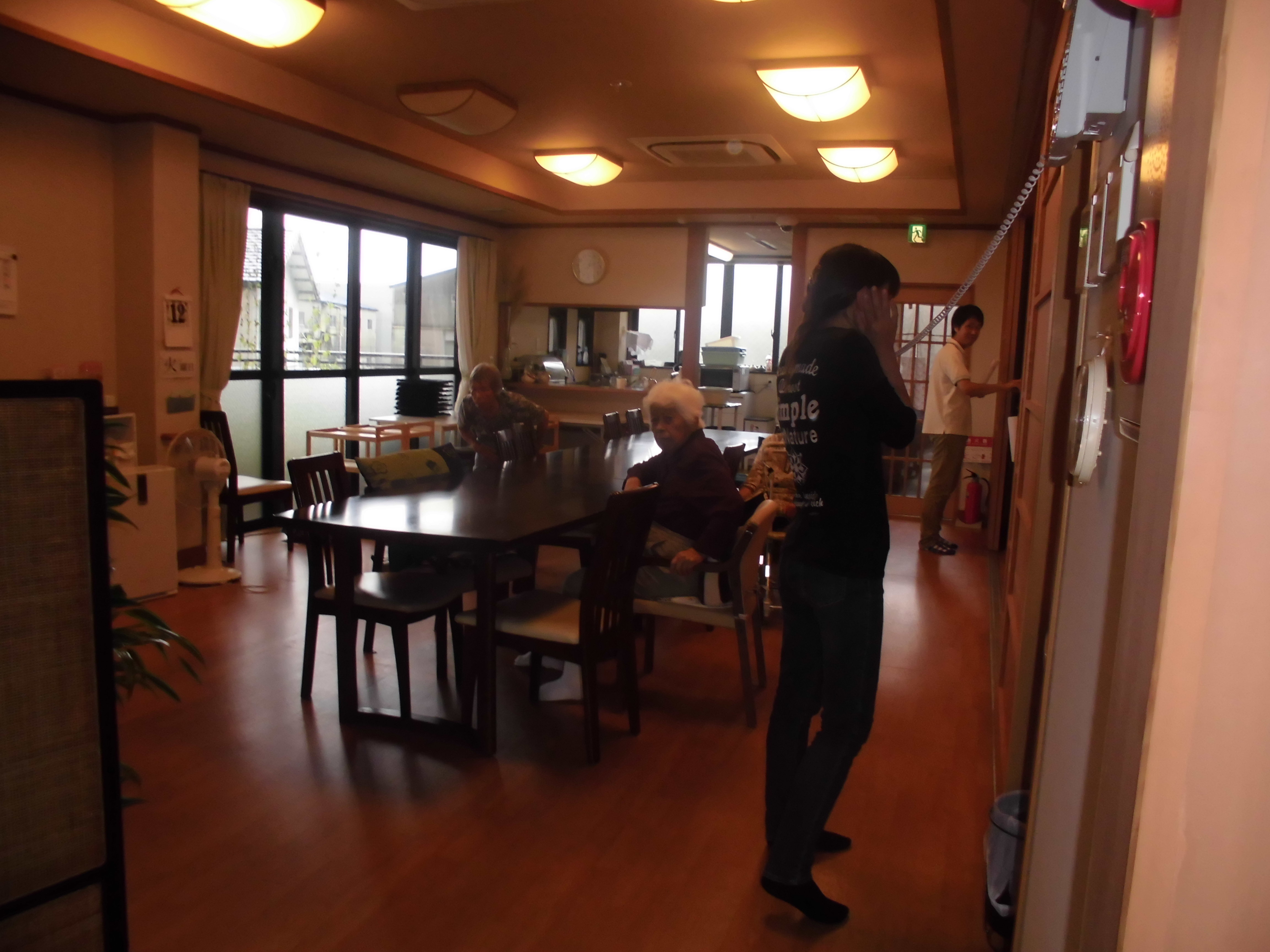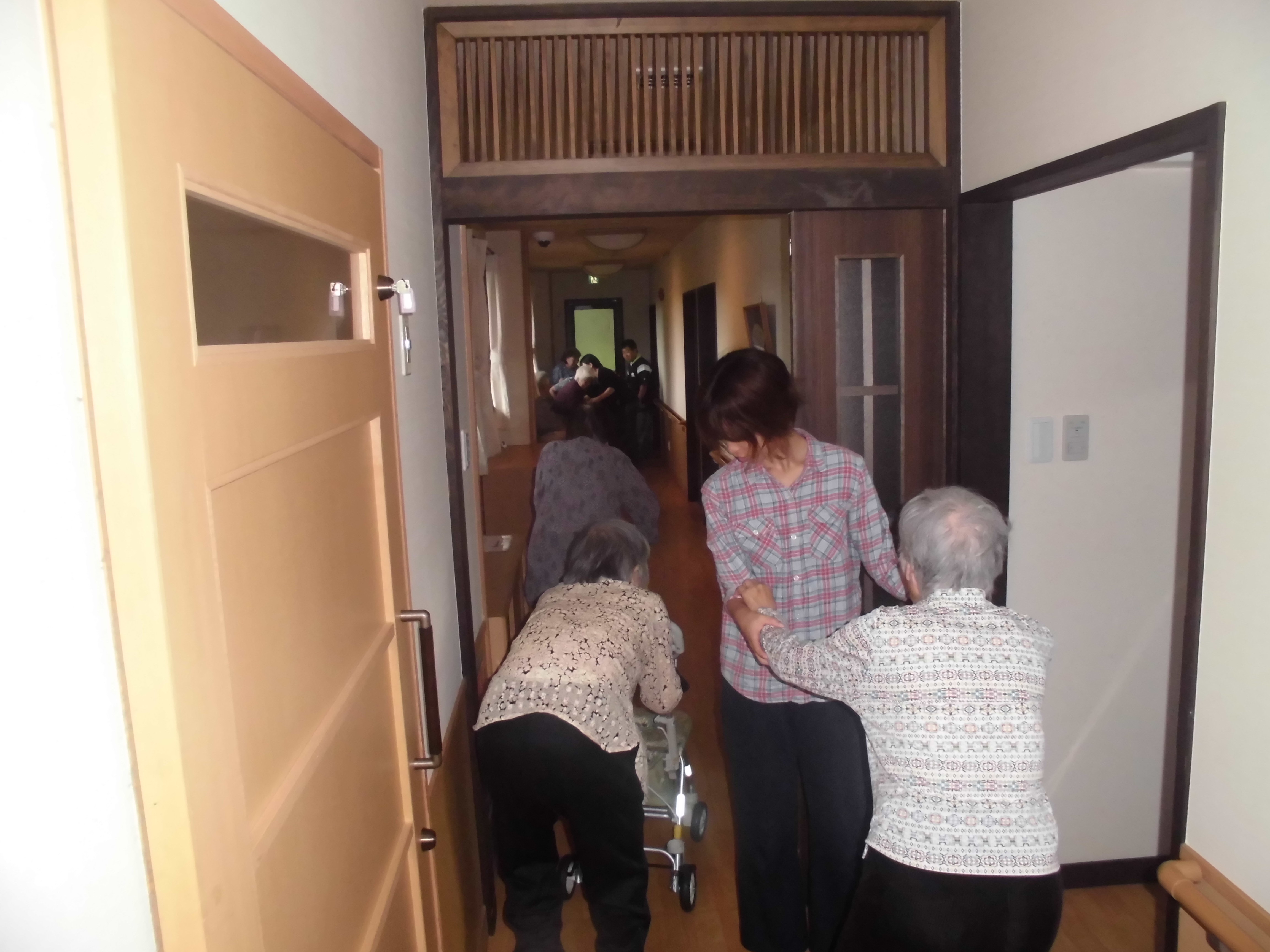 毎月の避難訓練。落ち着いて皆さん集合して下さいました。