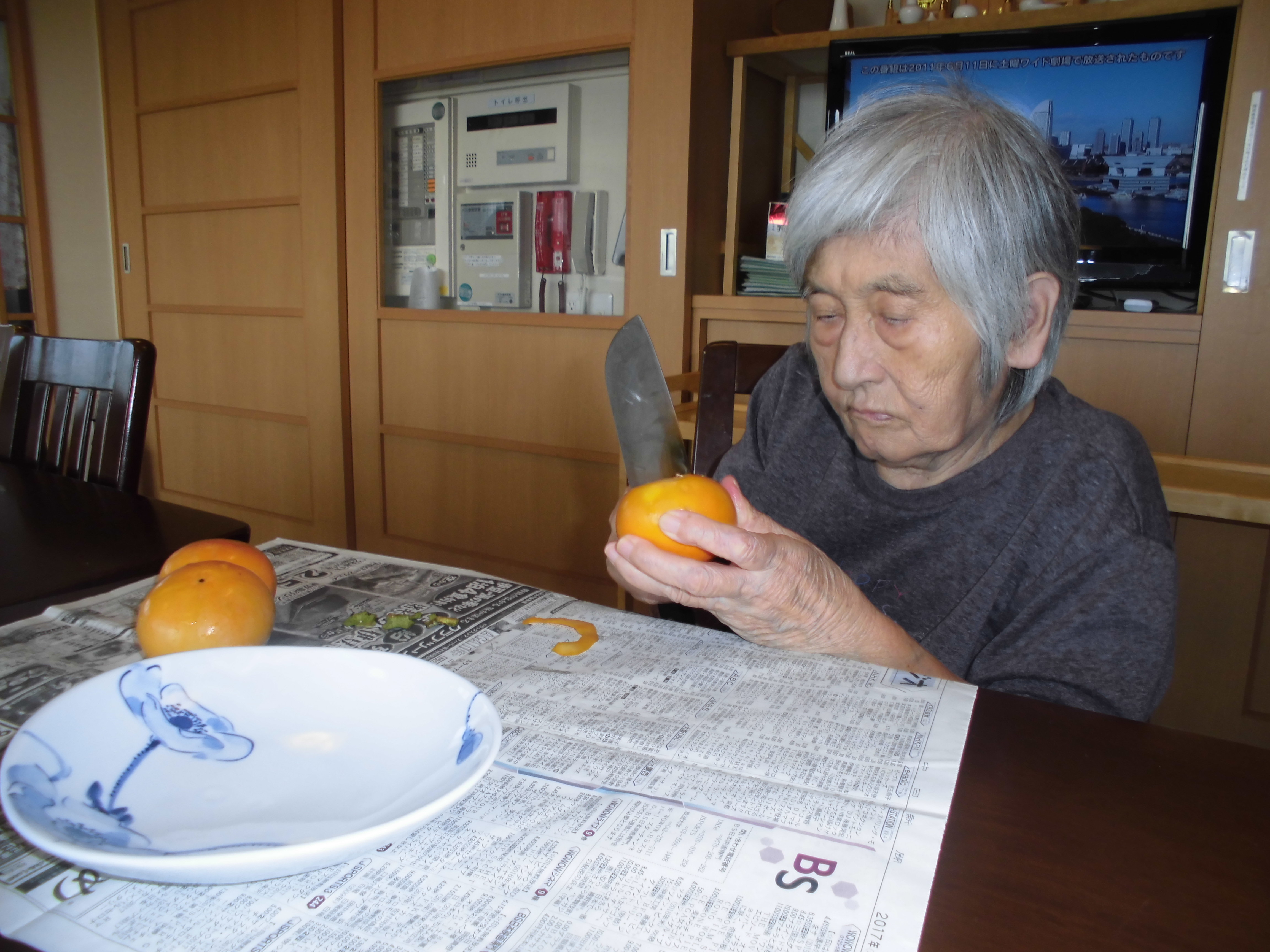 柿の皮をむいていただきました。