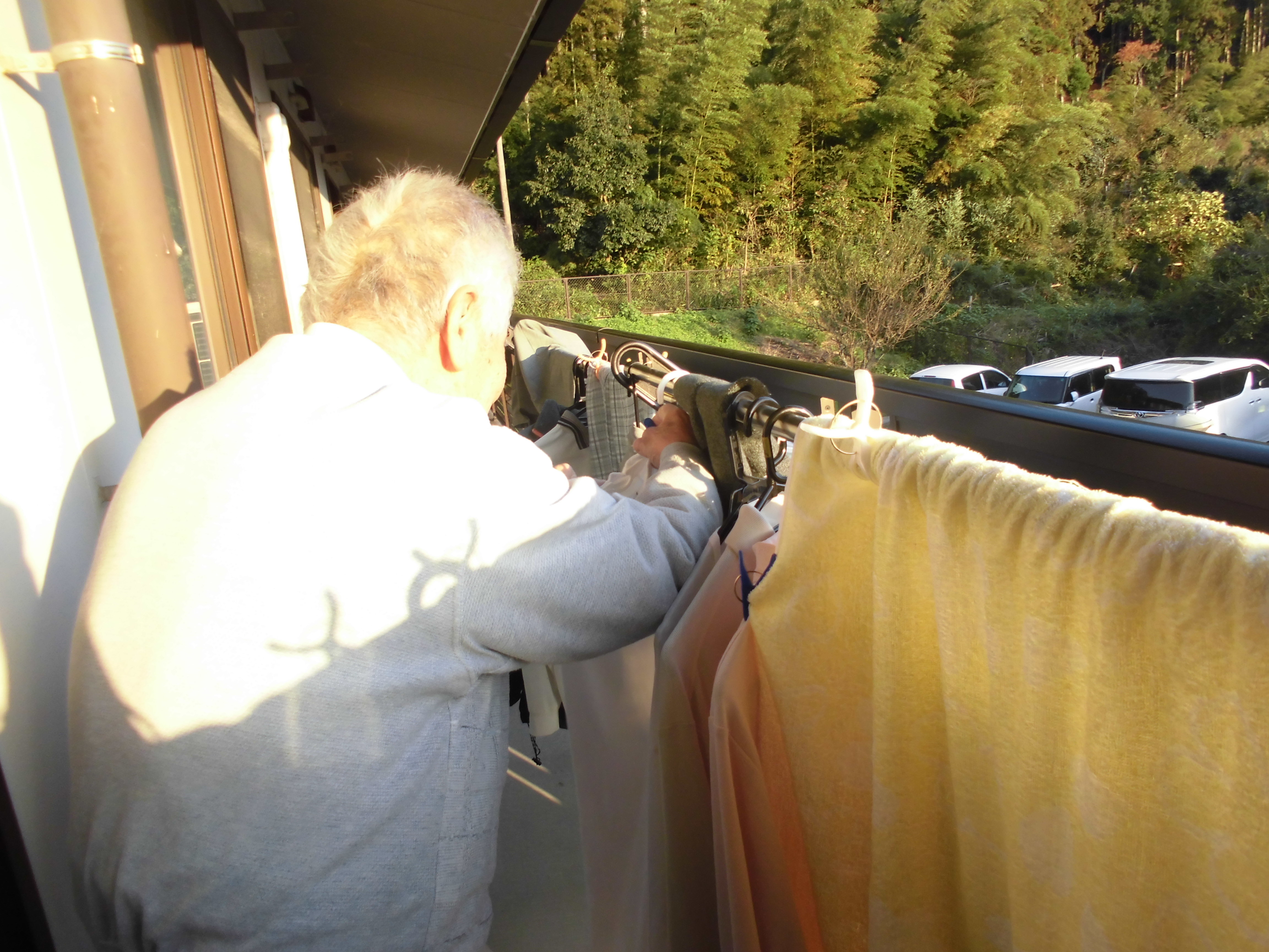 乾いた洗濯物を取り入れられていました(*^∪^*)