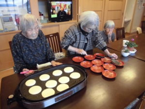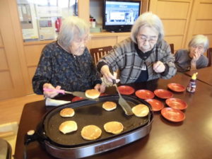 おやつはホットケーキ 美味しくいただきま~す。v(゜0゜)