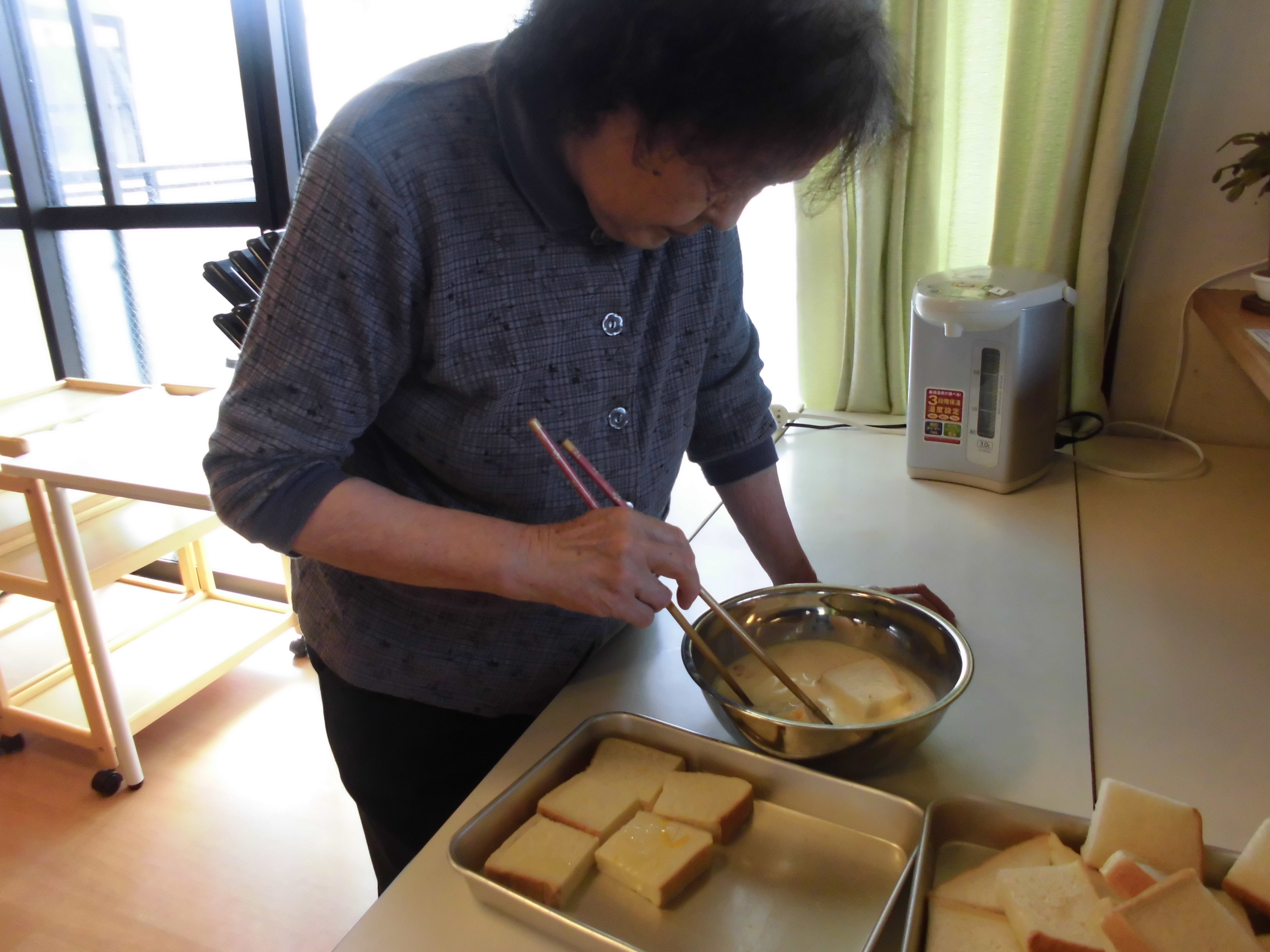 3時のおやつは、フレンチトーストーでした。おいしいと言われていました