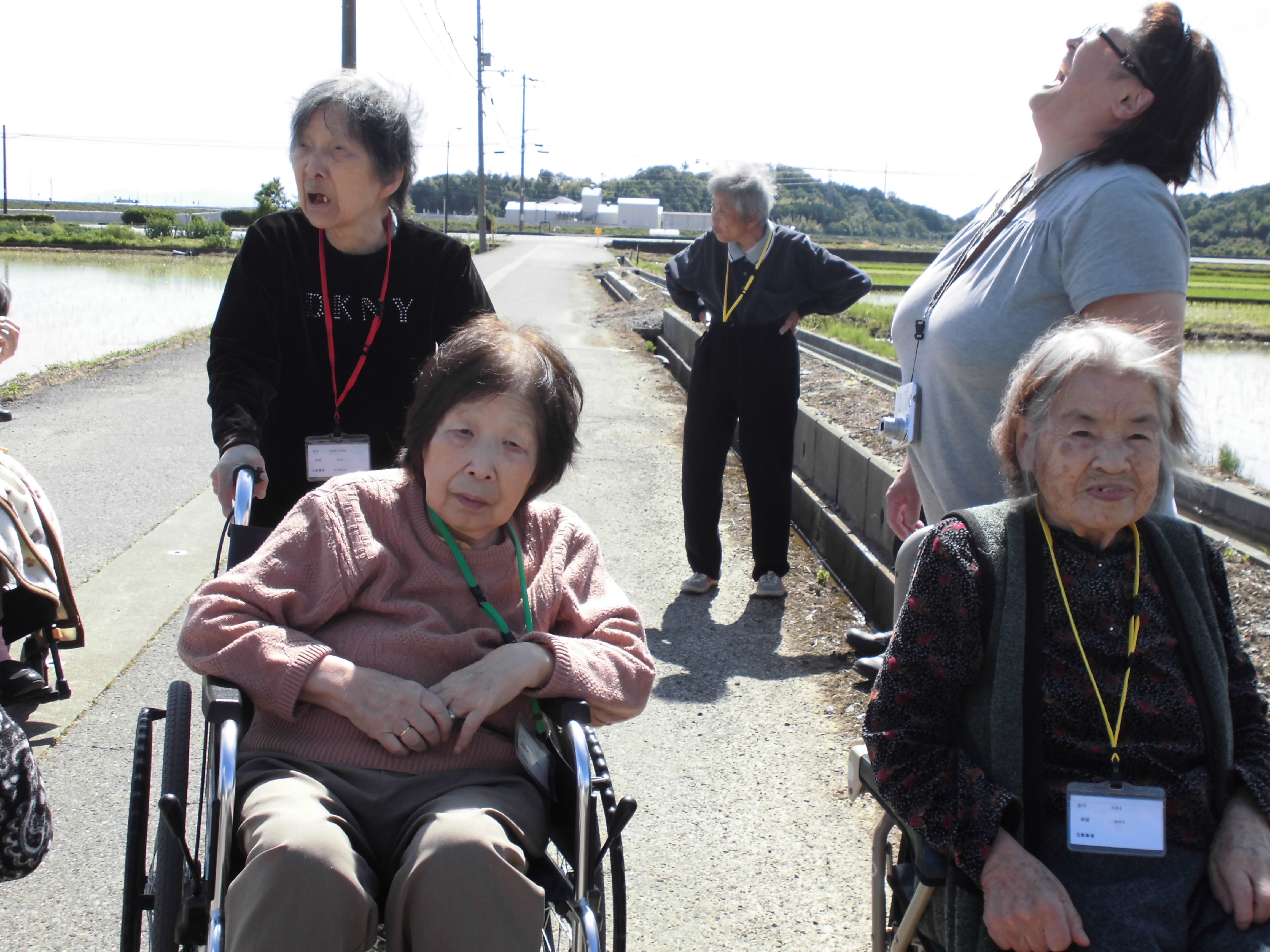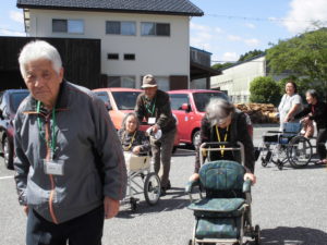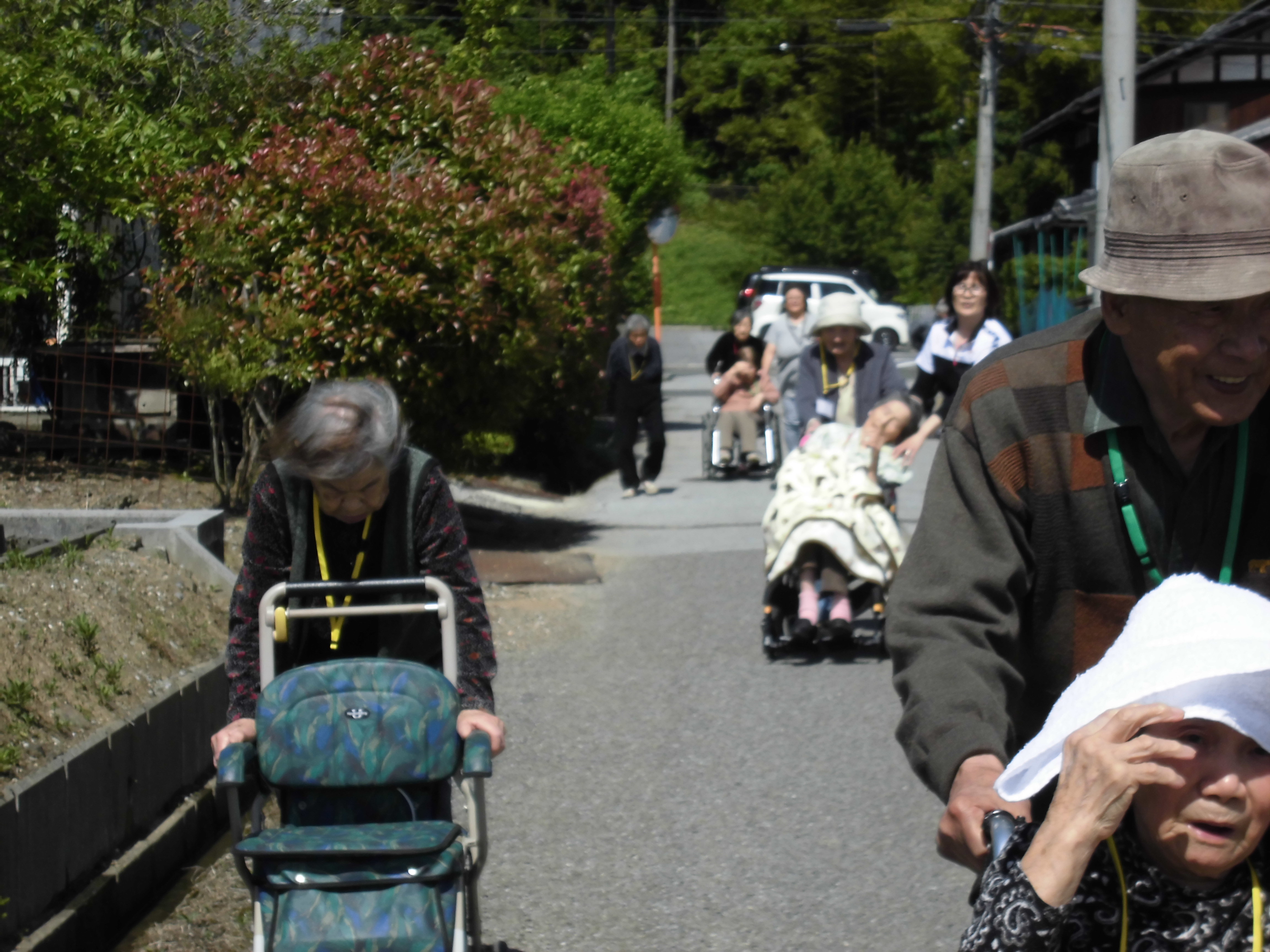 避難訓練後、小規模とグループホームで散歩に行きました。