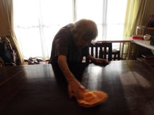 台拭きを置くとすぐに立ち上がり拭いて下さいました。