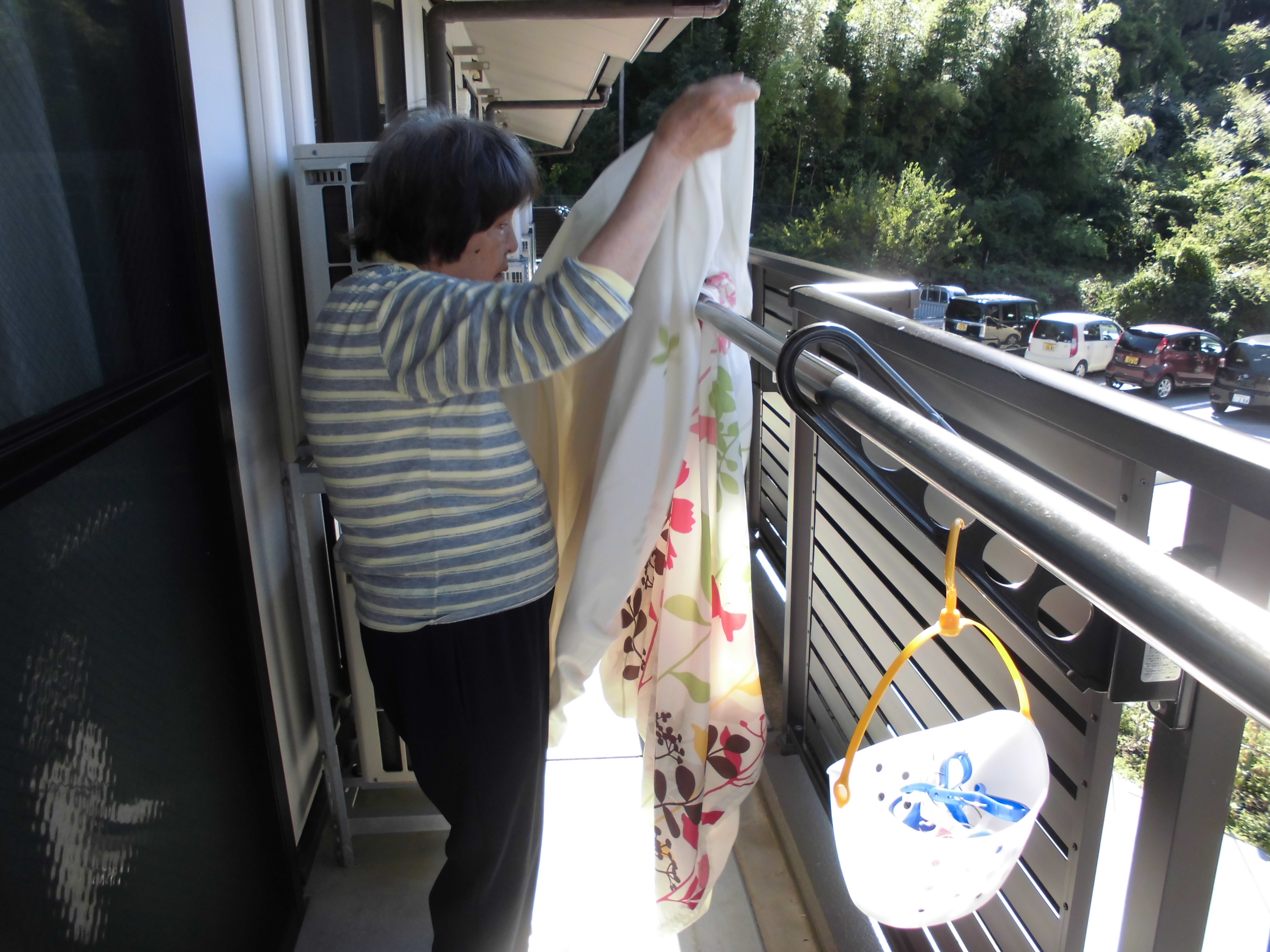 自分の事は出来ますと洗濯干されます。 出来ない方の直し物をして頂きました。