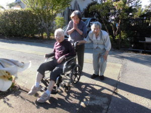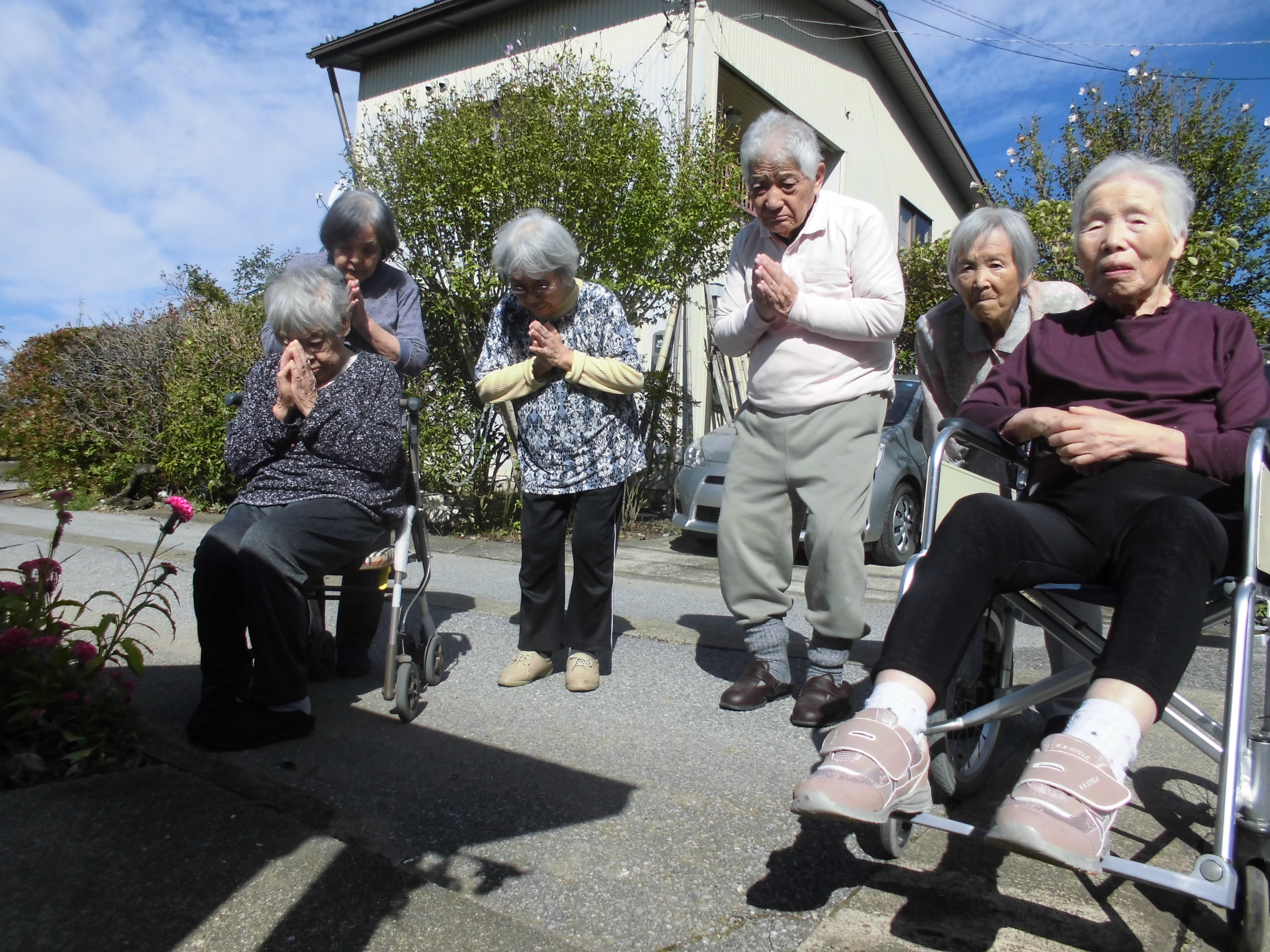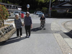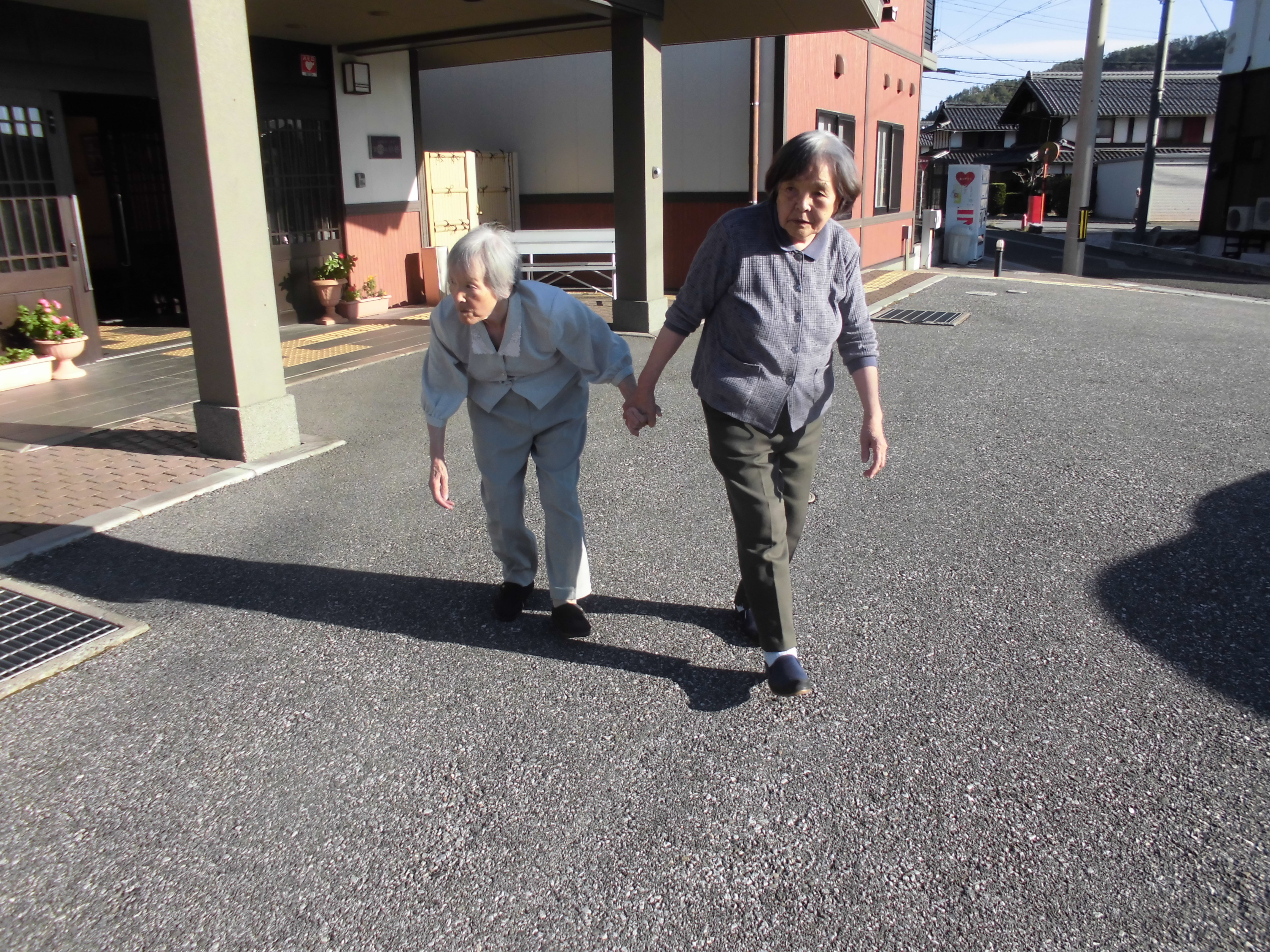 仲良く手を繋いで、お地蔵さんに元気に居られます様にとお願い事をされていました