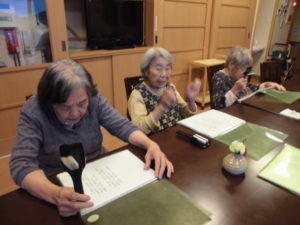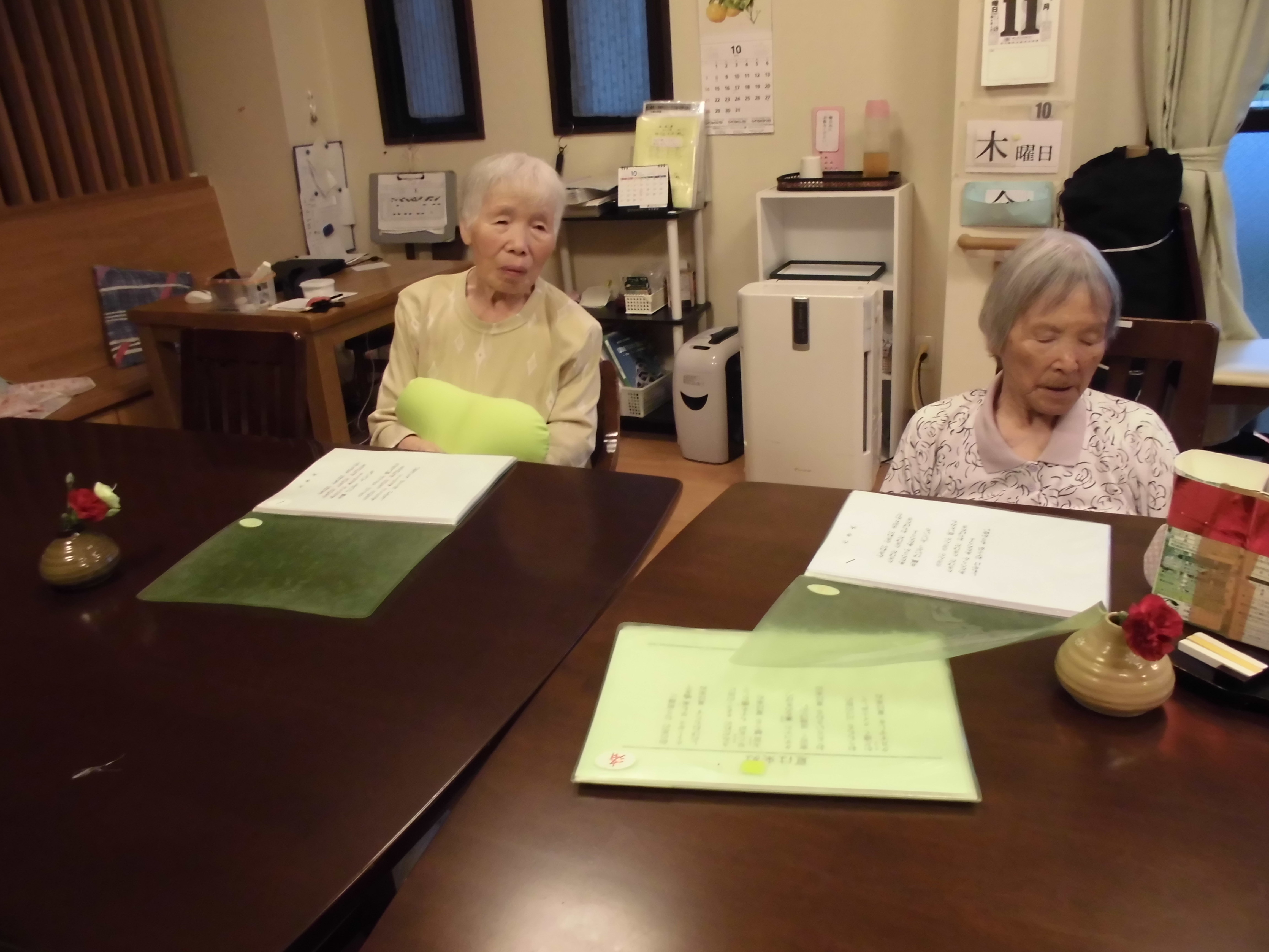 大きな声を出す事で嚥下体操になります。歌は皆さん大好きです。