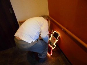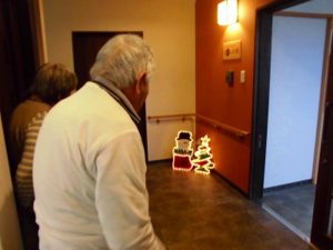 クリスマスの飾り付けをしました。電気をつけしばらく眺めておられました。