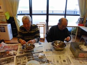 昼食準備やお茶の葉入れなど、皆さんでしてくださいました。