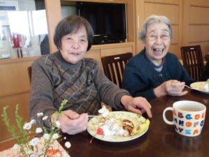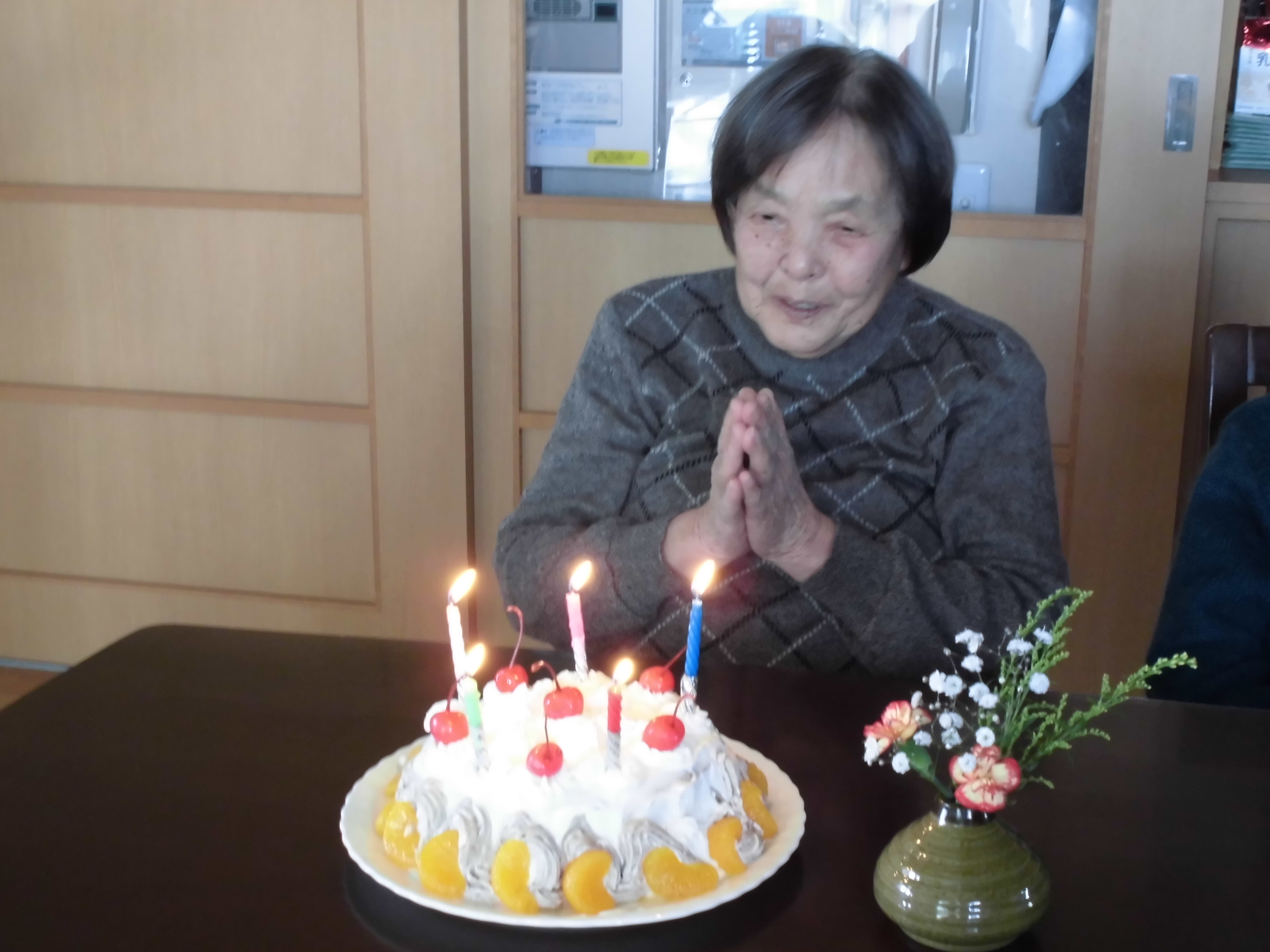 誕生日を皆さんで歌ってお祝いし、手作りケーキ食べました。