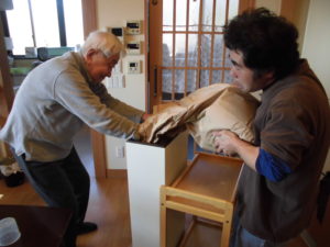 職員と一緒にお米を入れてくださいました