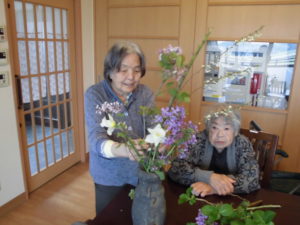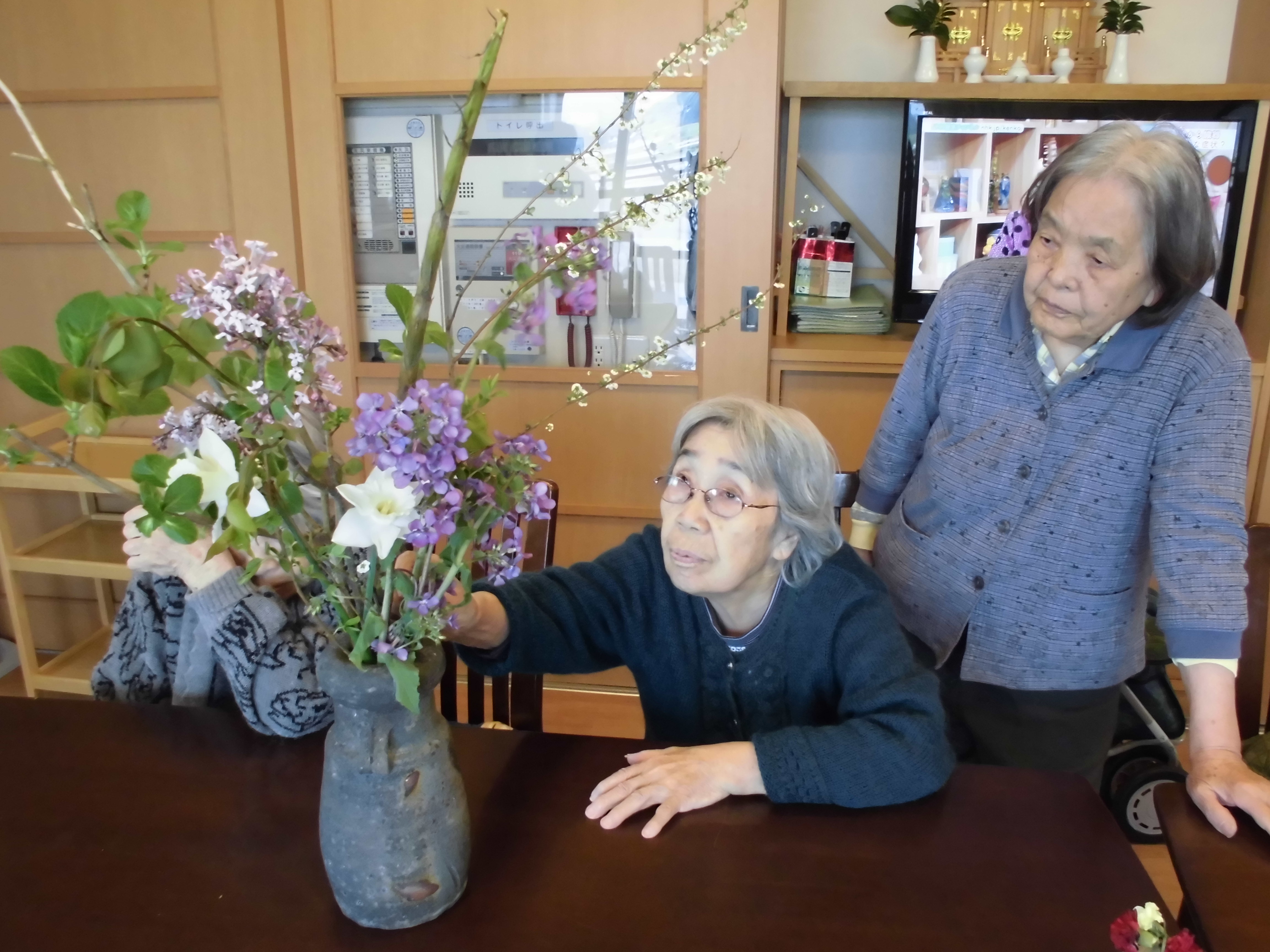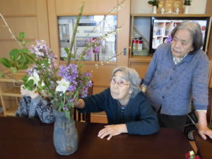 かびんにお花を入れて頂きました。綺麗だなと話されていました