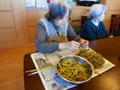 蕗のすじとりして頂き、昼食に美味しく頂きました。