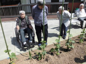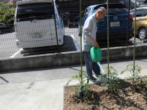 畑に水やりをして頂きました