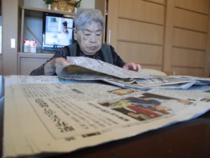 新聞や広告を折って頂きました