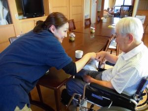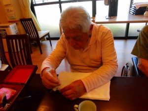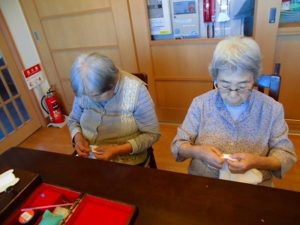 台拭きを縫ってくださっています。皆さん器用ですね。