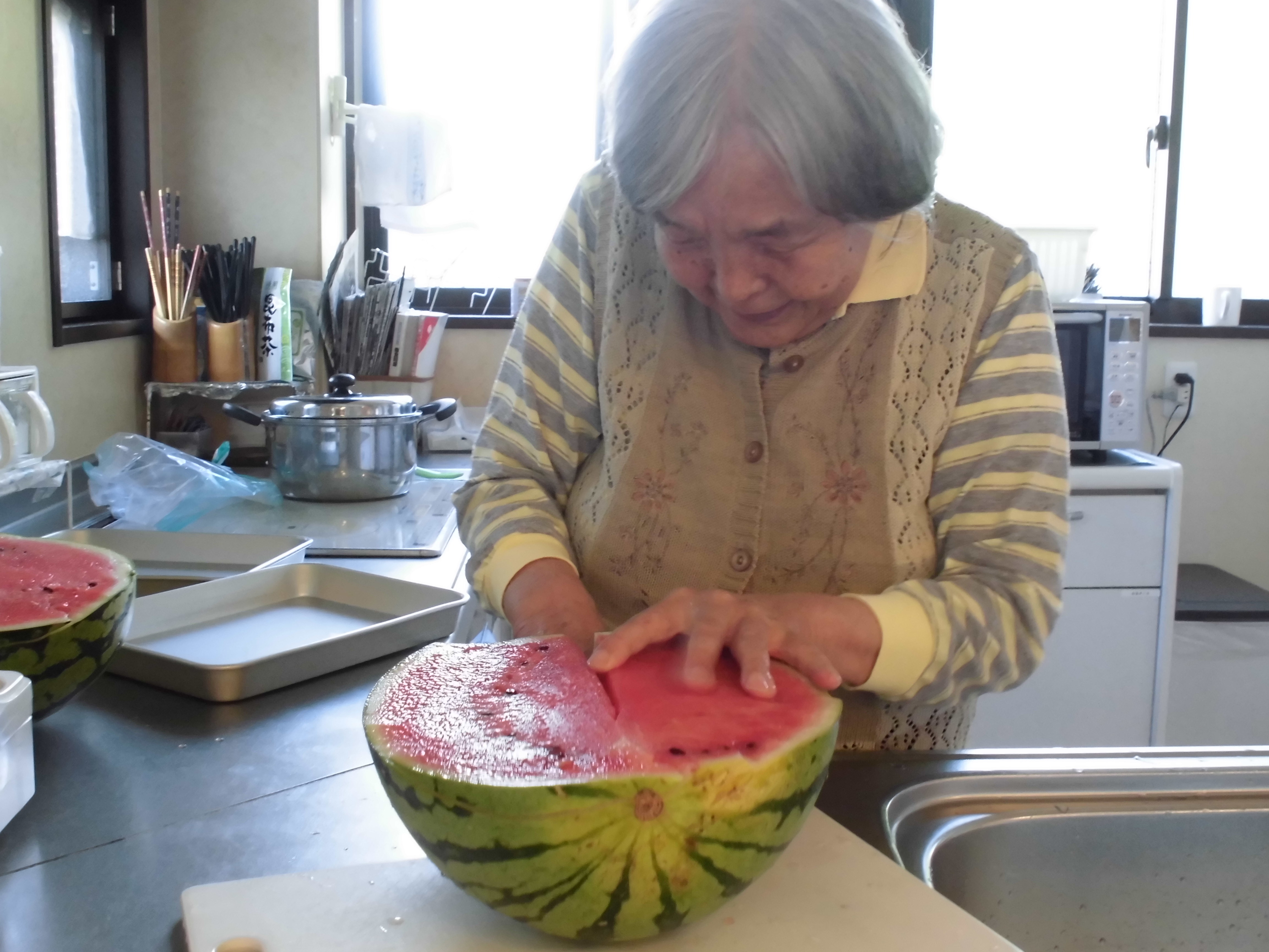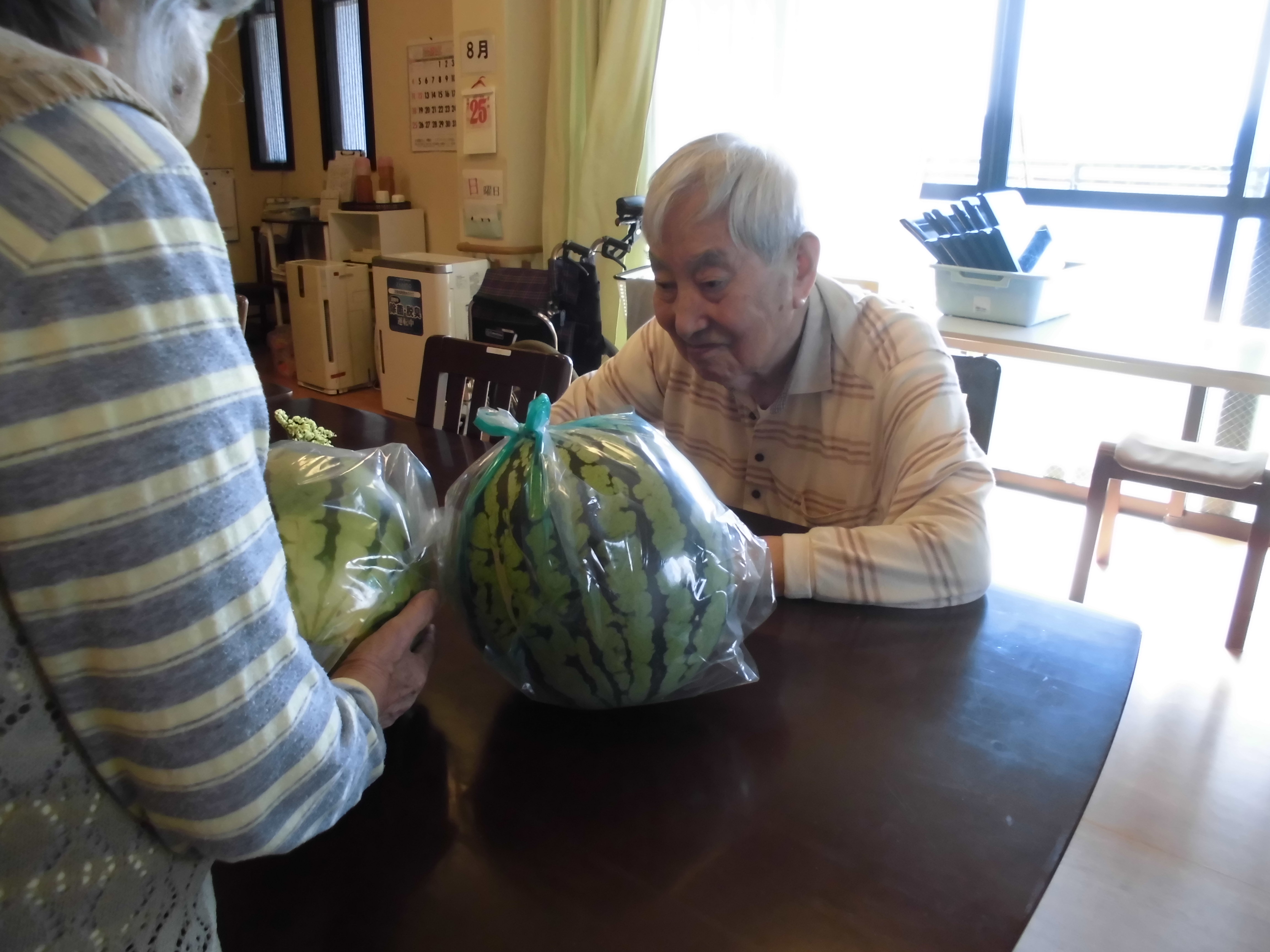 そんな中、ご利用者様の娘様から立派な高月スイカを頂きました♪