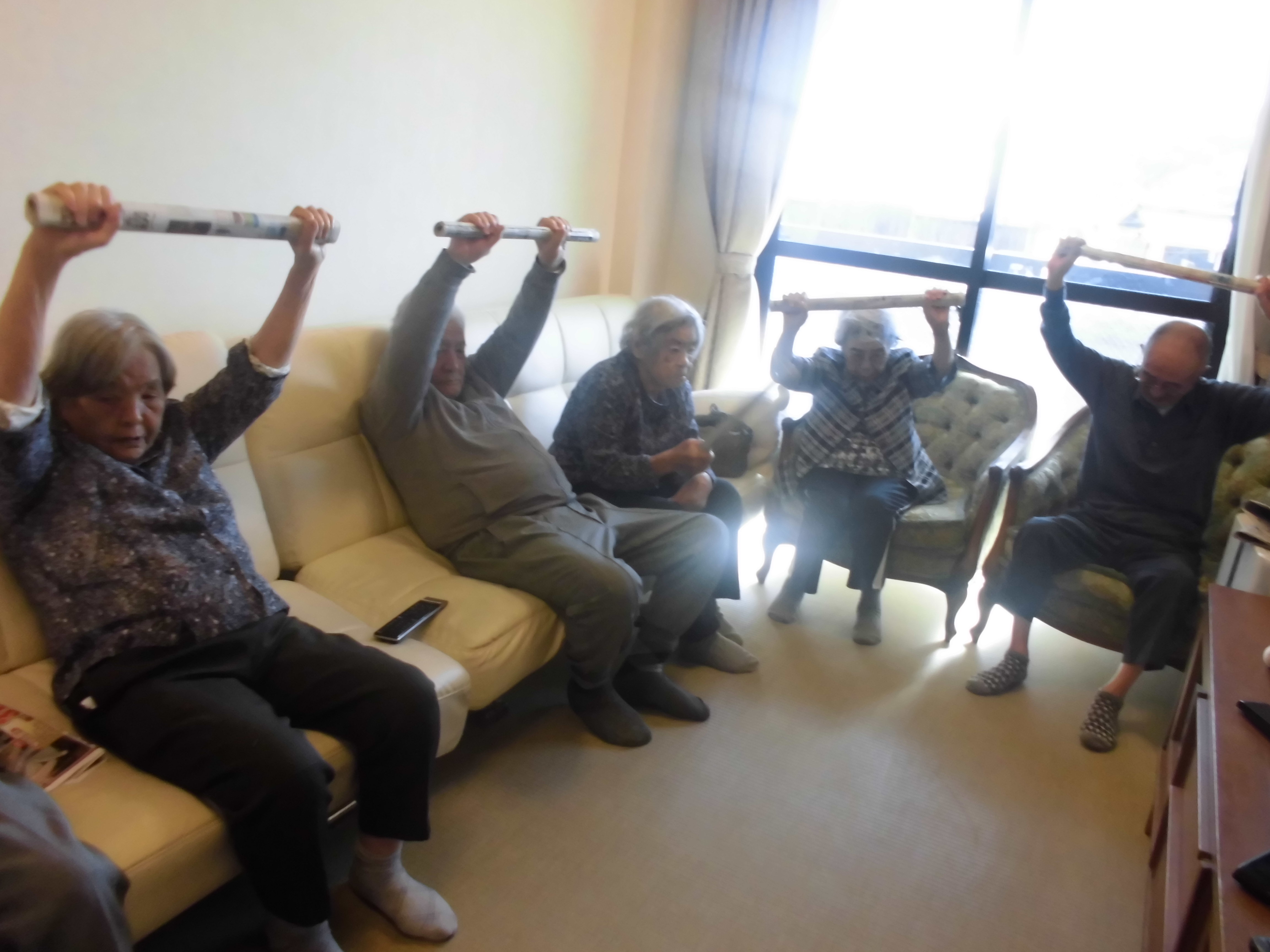 腕を下ろすと「あ~えらっ、腕あげとくんもなかなかやで~」と