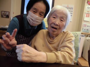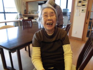 久しぶりに昔からなじみのヘルパーさんも来てくれて笑顔が見られました。 木