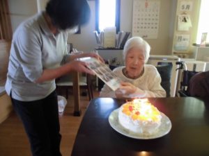 今日は、利用者様のお誕生日会をしました。手作りの🎂ケーキ🎂と職員からの手作りの