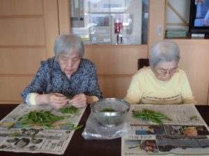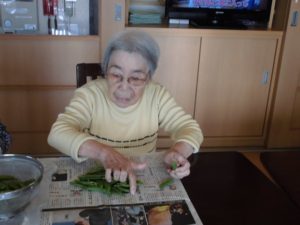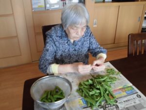 話されて、沢山のスナップエンドウ豆のへたを取る作業をしてくださいました💛
