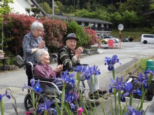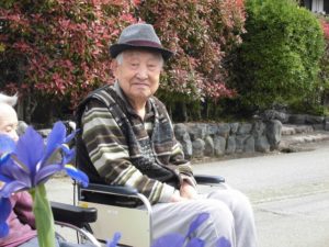 その後、散歩に行かれました。玄関に咲いているお花🌸を見て、綺麗な花を咲かせてね。と