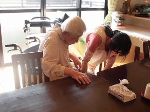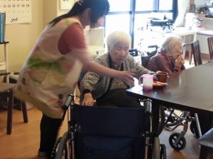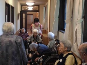 「火事です。」との声掛けで・・・職員の指示に従って、車椅子に移乗されたり、自分で