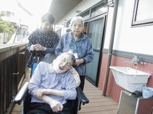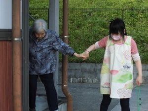 実際に、外へ出ての避難訓練も行い、1階の利用者様と一緒に避難されました。