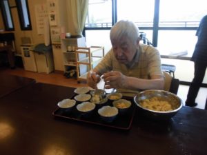 食事の準備中。