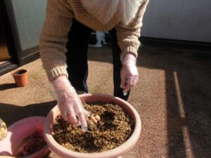 今日はチューリップを植えました♪ 成長が楽しみですね。今日も元気に楽しく過ごされています。
