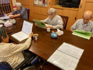 戻ってからも、日課の散歩と、体操、歌の会も皆さん参加されました。