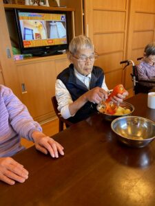 今日はみんなで昼ご飯つくりのお手伝いです。 木