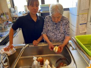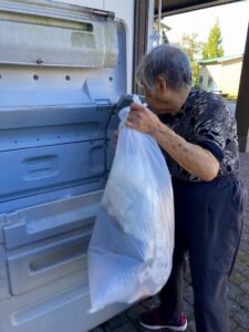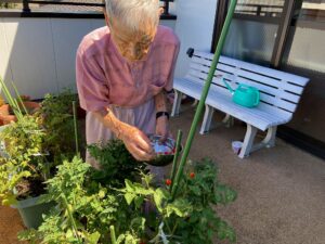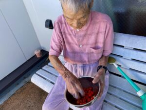 今日もみなさん、活発に動いておられました。ゴミ捨て、料理、トマトの収穫、洗濯。