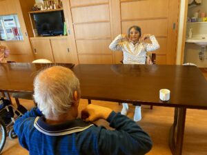 今日も寒い1日でした。それでも皆さん、散歩に出掛けたり、廊下を歩いたり、体操したりと