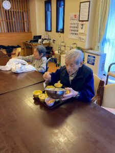 ご飯の準備とお手伝いして下さいました。梅干し体操には熱心に参加して下さってます。