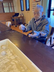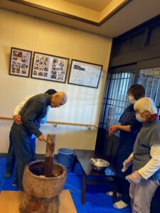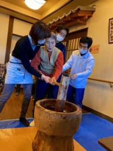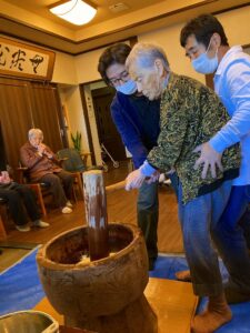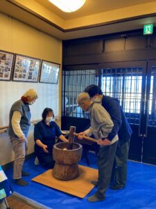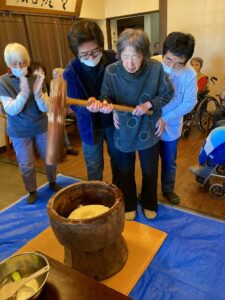 皆様、杵で餅つきを楽しまれ、昔を思い出されたご様子です。有難うございます。感謝。