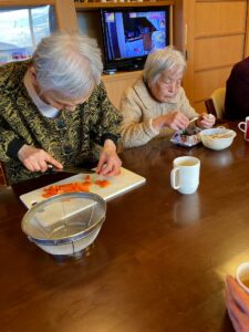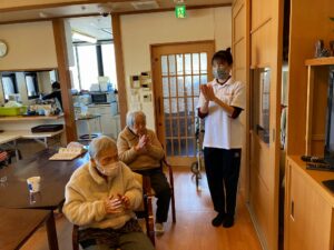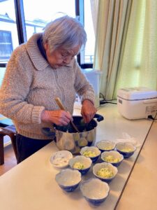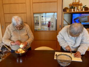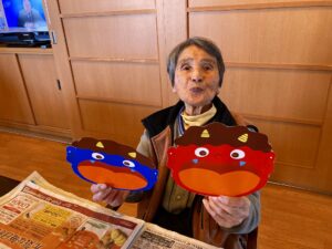 今日は、お天気良くお散歩も元気にされ、体操もされ、お料理やお面作りもされています。有難うございます。感謝。(*^-^*)