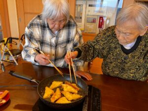一日お疲れ様でした。雨降りだったのでみなさんで中でフレンチトースト焼きました。