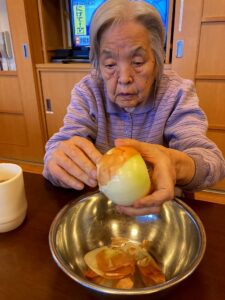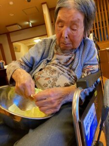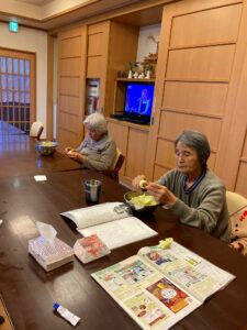 今日もみなさん、ご飯作りを手伝ってくださいました。夕食はあんかけ焼きそばにサツマイモのレモン煮。