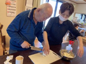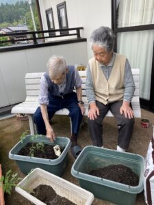 今日はカラッとした良い天気でした。ベランダで野菜の苗を植える準備もしてくださいました。